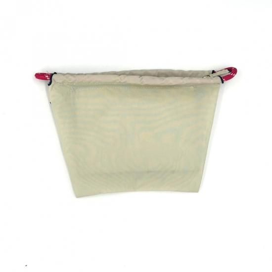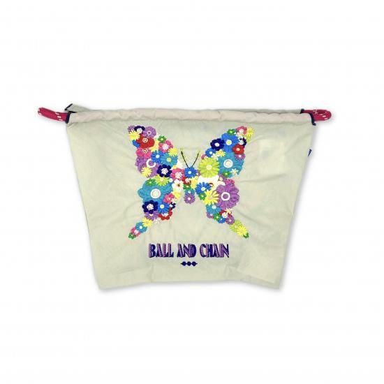 厚手のナイロン生地に刺しゅうでデザインを施したポーチは、耐久性に優れ、折りたたむとコンパクトになり、持ち運びにも便利です。