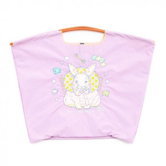 厚手のナイロン生地に刺しゅうでデザインを施したショッピングバッグは、耐久性に優れ、折りたたむとコンパクトになり、持ち運びにも便利です。