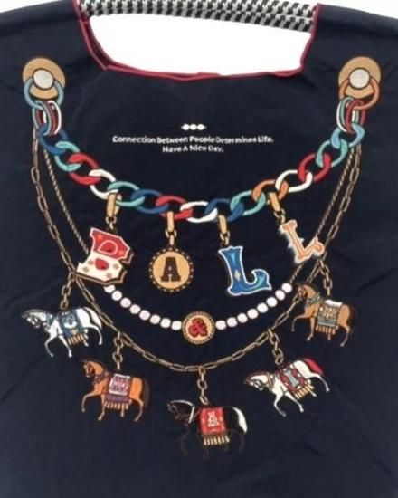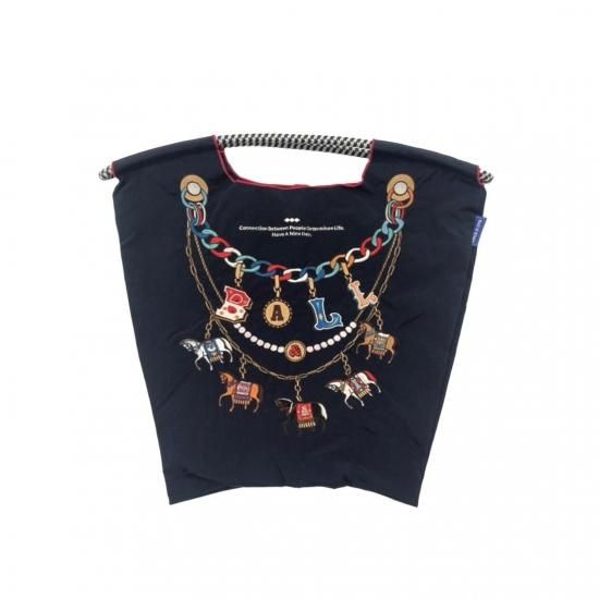 厚手のナイロン生地に刺しゅうでデザインを施したショッピングバッグは、耐久性に優れ、折りたたむとコンパクトになり、持ち運びにも便利です。