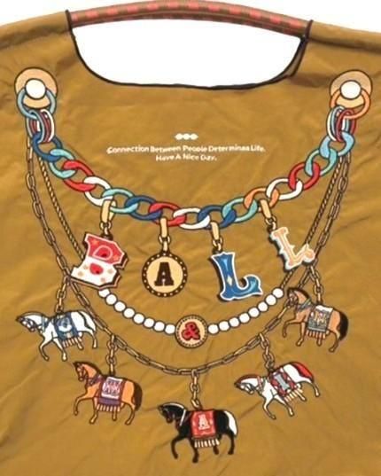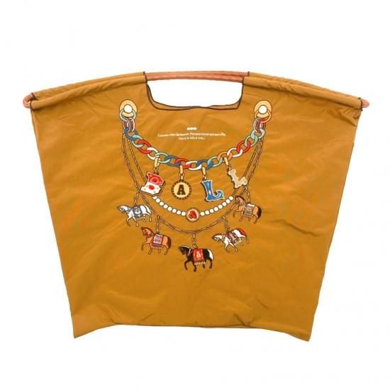 厚手のナイロン生地に刺しゅうでデザインを施したショッピングバッグは、耐久性に優れ、折りたたむとコンパクトになり、持ち運びにも便利です。
