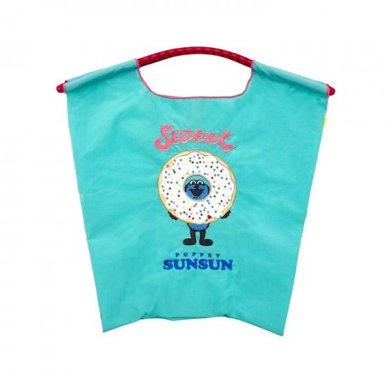 厚手のナイロン生地に刺しゅうでデザインを施したショッピングバッグは、耐久性に優れ、折りたたむとコンパクトになり、持ち運びにも便利です。