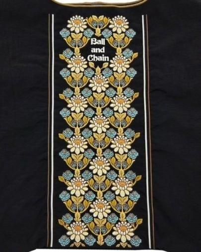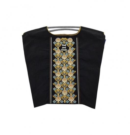 厚手のナイロン生地に刺しゅうでデザインを施したショッピングバッグは、耐久性に優れ、折りたたむとコンパクトになり、持ち運びにも便利です。